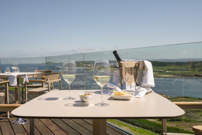 루리도 해변(Lourido Beach)이 내려다보이는 전망이 탁 트인 테라스가 있는 식당에서 먹게 됩니다.