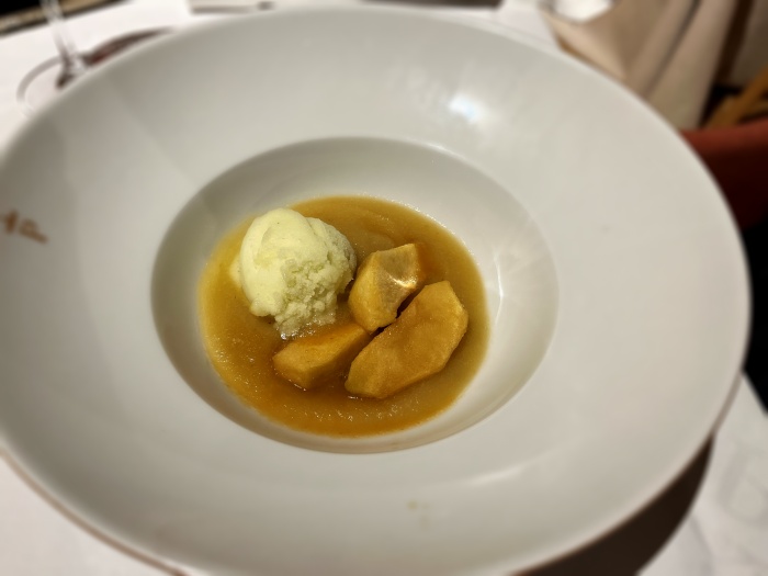 다른 하나는 아주 강한 신맛의 사과 절임과 사과 샤베트 입니다. 상큼한 맛과 향에 아내는 좋아했지만, 저에겐 너무 시어서 먹기가 힘든 디저트였습니다.