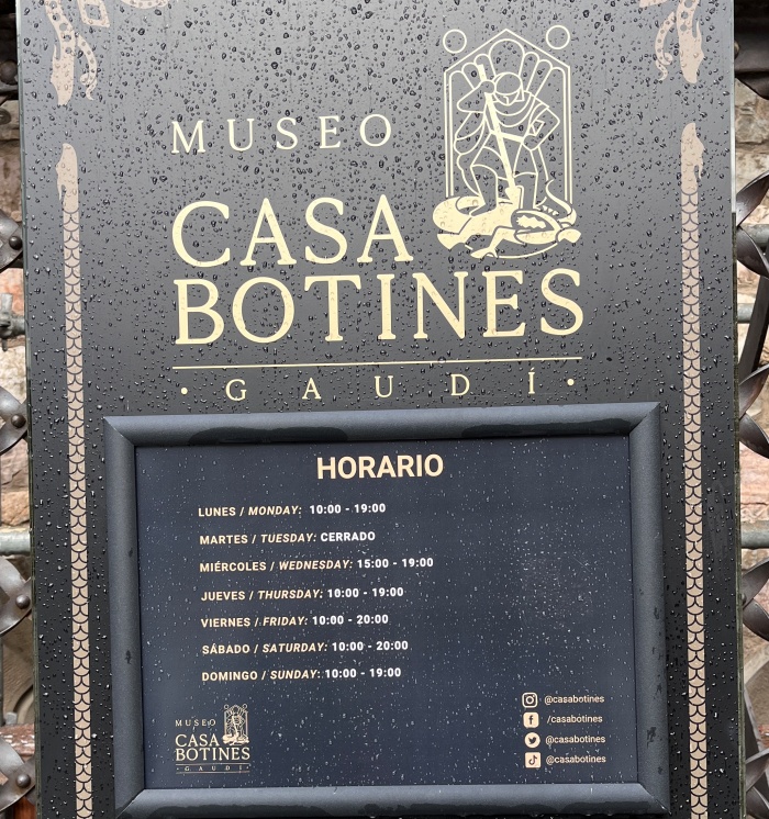 보티네스 저택은 매주 화요일이 휴무입니다. 그리고 운영 시간은 아래와 같습니다.