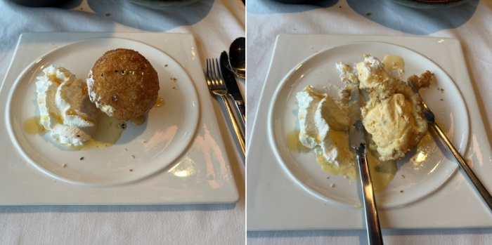 디저트에는 커피와 차 그리고 '일반' 아이스크림과 '튀긴' 아이스크림이 있었습니다. 저희는 '튀긴' 아이스크림과 커피 한잔을 주문했습니다. 그리고 얼마 후 기가 막힌 디저트가 나왔습니다.