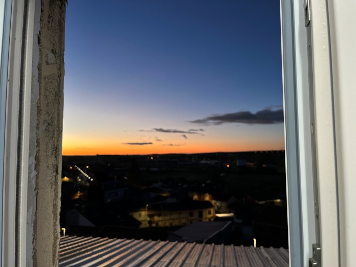기온이 많이 떨어진 듯합니다. 밤새 많이 추웠습니다. 아침에 일어나니 목도 약간 칼칼한 것 같습니다. 창 밖을 보니 붉은 아침 태양이 떠오르고 있습니다. 모든 알베르게들의 좁은 샤워실 특성상 머리를 감으면 전체적인 샤워를 할 수밖에 없는 구조인데 오늘은 머리를 감지 않고 간단히 세수만 하고 출발하기로 합니다.
