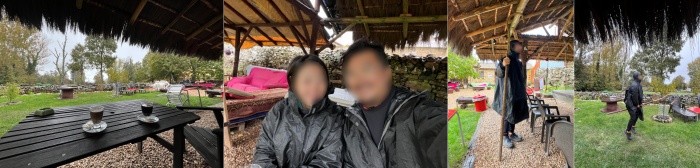 커피를 한잔 받아와 캠핑장에 있는 벤치로 가서 앉았습니다. 그래도 캠핑장이 분위기가 좋습니다. 날씨가 좋은 날 이런 곳에서 캠핑을 해 보는 것도 정말 좋을 것 같습니다. 비가 와서 그런지 아무도 없습니다. 비에 젖은 오두막 아래에서 미지근한 커피를 마시며 잔디 위로 떨어지는 빗소리를 듣는 것도 낭만이 있는 것 같습니다. 이 시간을 기념하기 위한 사진을 남깁니다.