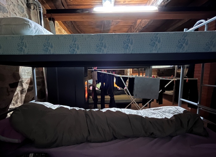 젊은 부부가 운영하는 이 알베르게는 저희가 갔을 때는 11월 비수기에 접어들어서 그런지 2층에 있는 도미토리 룸은 운영하지 않았고, 1층에 있는 도미토리만 운영하고 있었습니다. 1층 도미토리에는 2층 침대가 총 10세트 들어가 있는 20인실 도미토리였고, 도미토리 내부에 화장실과 샤워실이 같이 되어 있는 Rest room이 2개 있었습니다.