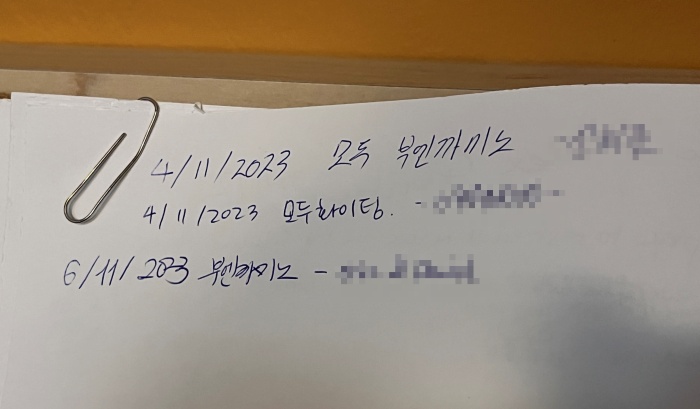 알베르게를 나서는데 방명록 노트가 보입니다. 이틀전에 다녀간 두 분의 방명록이 있었는데 모두 다 한국분들이었습니다. 저희도 간단히 인사를 남기고 출발합니다.