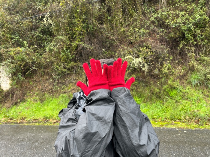 그들은 저희보다 먼저 출발을 했고, 식사를 마친 저희도 이제 다시 출발합니다. 밖으로 나오니 비가 그쳤습니다. 아내는 어제 비야프랑카에서 새로 산 빨간색 울 장갑을 끼고 좋아합니다.