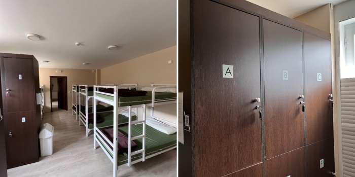 저희가 도착한 날 그 숙소에 묵는 손님은 저희 부부와 외국인 남성 순례자분 1명뿐이었고 모두 2인실을 사용하였습니다. 비어있는 도미토리를 들어가 보았는데, 철제로 되어 있긴 하지만 깔끔한 새 2층 침대였고 잠금장치가 있는 개인 사물함이 있어서 좋아 보였습니다.