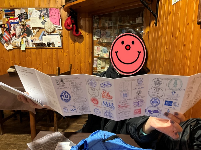 커피를 주문하고 '쎄요(Sello, 도장)'를 하나 찍어와 앉았습니다. 이제 정말 얼마 남지 않았습니다. 딱 일주일 남았습니다. 크레덴시알을 길게 펼쳐서 지금까지 걸어온 발자취를 더듬어 봅니다. 시작할 때가 불과 얼마 전인 것 같이 생생한데, 이제 내일이면 사리아(Sarria)입니다.