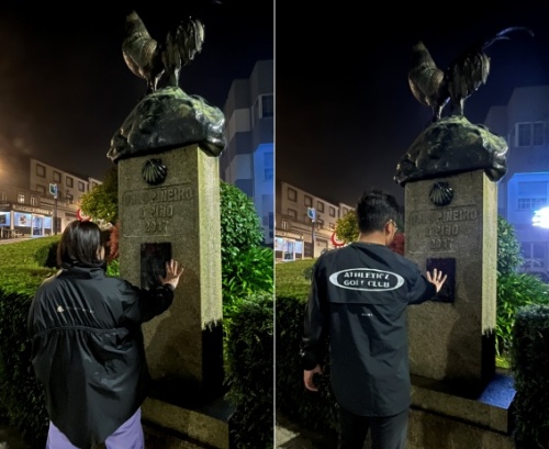부른 배를 어루만지며 쌀쌀한 페드로우소 마을을 한 바퀴 걸었습니다. 시청 건물 앞에 있는 Galo Piñero o Pino라는 조각상에 새겨진 손바닥 앞에서 사진을 한 번씩 찍고 발가락이 시려 숙소로 들어왔습니다.
