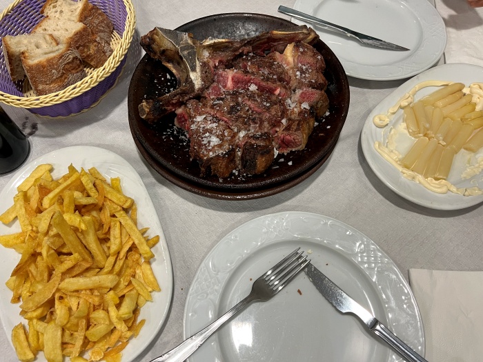 정확한 메뉴 이름은 기억나지 않지만 출레똔(chuletón) 이라는 소고기를 메인으로 시키고, 마요네즈를 곁들인 아스파라거스를 주문하였습니다. 푸짐한 소고기는 훌륭했고, 물컹하고 차가운 아스파라거스는 저희 입맛엔 별로였습니다.