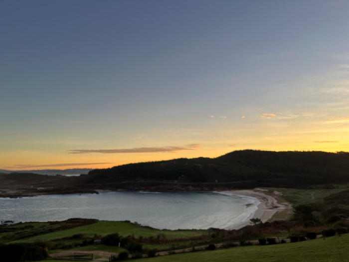 180은 훨씬 넘어 보이는 큰 키의 그는 머리는 다 벗겨지고 걸음도 느렸지만 말끔한 외모에 깨끗하고 윤이 나는 얼굴빛을 하고 있었습니다. 스페인 아내와 함께 영국에서 살다가 은퇴를 하고 재작년에 아내의 고향 산티아고데콤포스텔라로 와서 살고 있다고 합니다. 아내와 함께 묵시아에 1박 여행을 왔다가 내일 산티아고데콤포스텔라로 돌아갈 예정이라고 합니다.