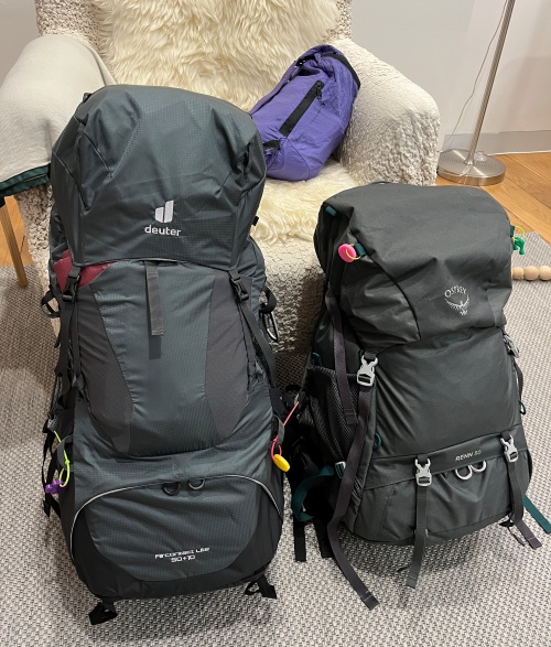 저는 도이터(deuter)의 AIRCONTACT LITE 50 + 10 모델을 사용했고, 아내는 오스프리(Osprey)의 RENN 50 모델을 사용했습니다.