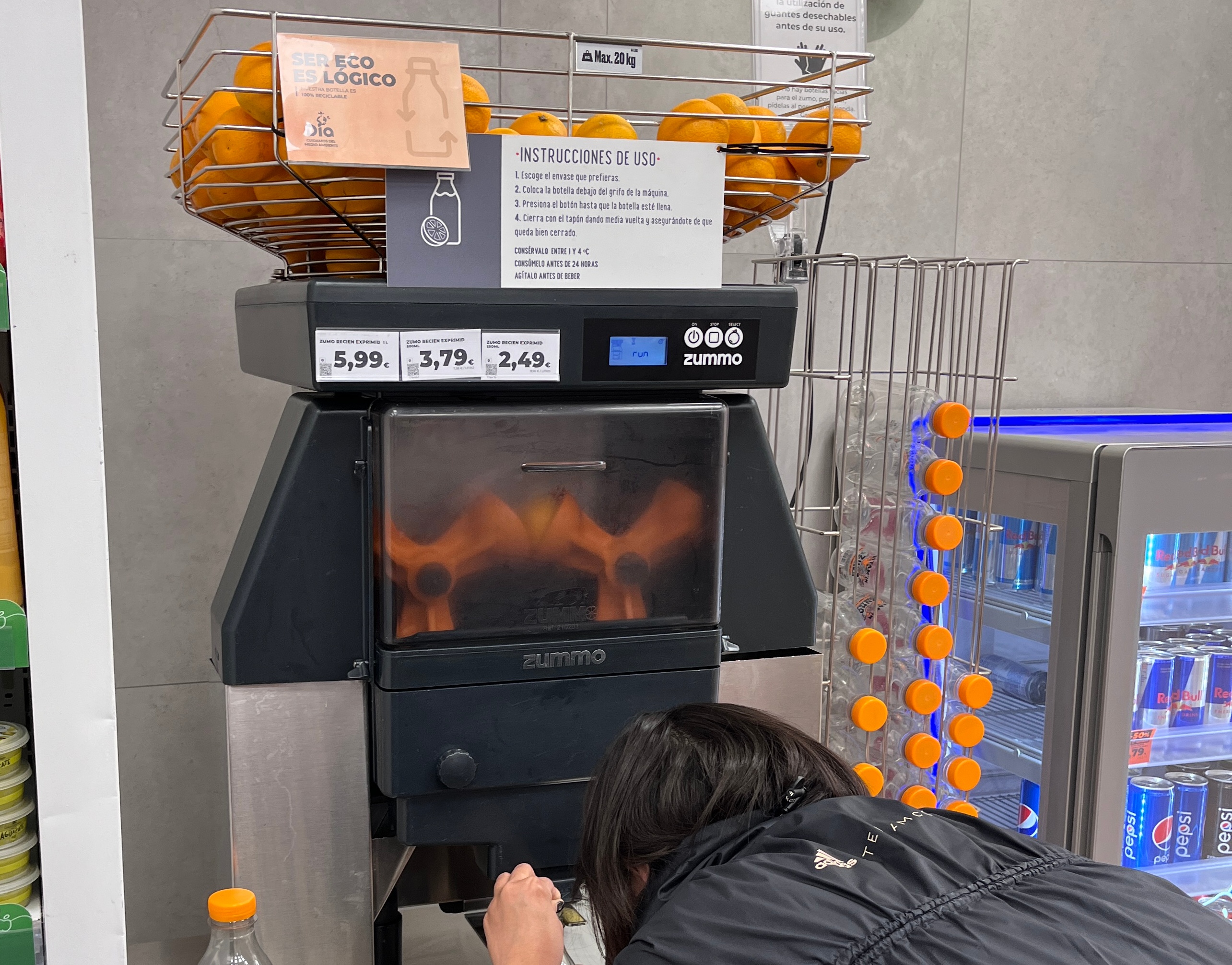 *착즙 오렌지 주스: 저희는 순례길을 걸으며 들리는 마을마다 슈퍼마켓을 들러서 이 주스가 있으면 사 마셨습니다. 옆에 진열된 빈병을 가져다 직접 짜서 담은 다음에 계산대로 가서 계산을 하면 됩니다. 사진을 보니 250ml에 2.49유로, 1000ml에 5.99유로였네요. 이 기계가 없는 슈퍼도 있고, 기계는 있으나 오렌지가 없어서 안 되는 경우도 있고 그랬습니다.