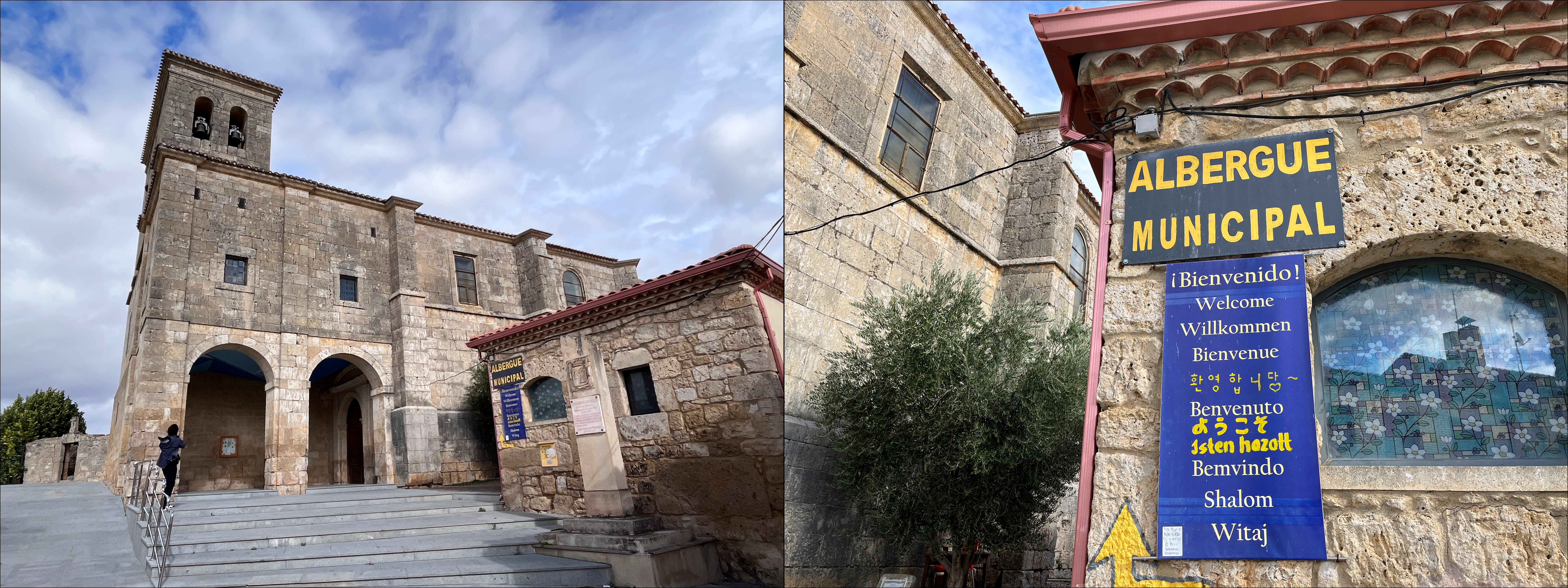 공립 알베르게는 산 로만 성당(Iglesia de San Román) 바로 옆에 있습니다.  그 다음날 들은 패밀리들의 후기에 의하면 너무 추워서 힘들었고 그 외 알베르게 환경도 좋지가 않아서 힘들었다고 합니다.  오늘 저녁식사는 공립에 묵는 패밀리들끼리 따로 먹고, 저와 와이프는 숙소에서 저희들끼리 따로 먹기로 했습니다.