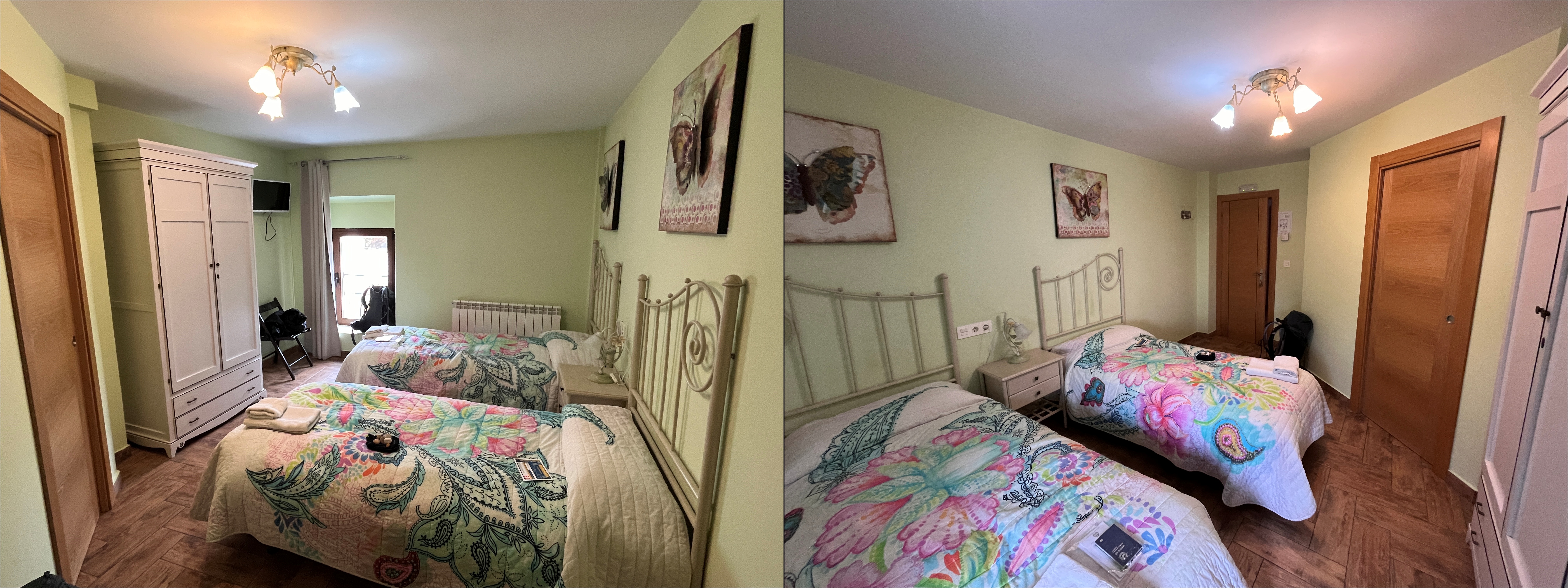 드디어 오르니요스에 도착하였습니다.  비는 진작에 그쳤지만 바람이 강해서 비옷을 바람막이 삼아 계속 입고 왔습니다.  축축했던 비옷은 바람에 완전히 말랐습니다.  컴컴하게 하늘을 덮고 있던 구름도 걷히고 스페인 가을 하늘 특유의 파란색이 모습을 드러냅니다.  숙소는 식당과 호스텔을 공동으로 운영하는 곳으로 보였으나 저희가 도착했을 때 식당 영업은 하지 않았습니다.  체크인을 하고 2인실 방을 배정받아 들어갔습니다.
