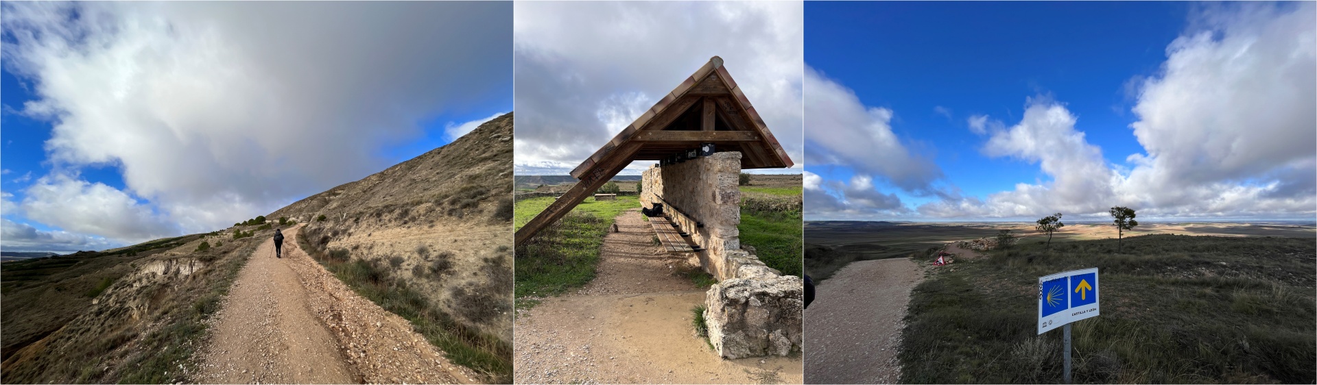 생각보다 가파른 언덕을 올라가면 앉아서 쉴 수 있는 공간이 나오지만 바람이 많이 불었기 때문에 오래 앉아있기는 힘들었습니다.  무엇보다 추워지는 날씨 때문인지 소변을 보게 되는 주기가 날이 갈수록 짧아지는 현상으로 화장실을 가야 하는 횟수가 늘어났습니다.  언덕에 올랐을 때는 이미 화장실이 급해진 상황이라 쉬지 않고 계속해서 길을 걸어갔습니다.