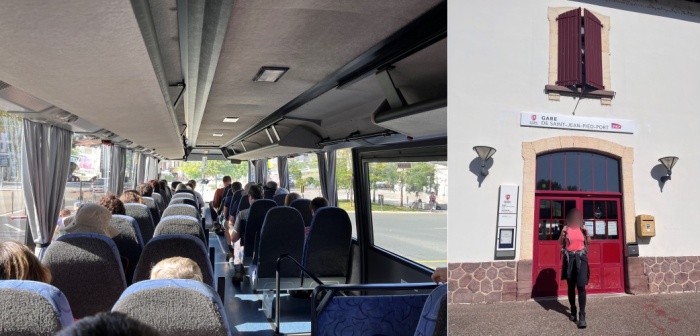 버스 시간이 되고 밖으로 나가자 저만치 앞에 배낭을 멘 사람들이 줄지어 서 있는 버스가 보입니다.  버스 아래 짐칸에 배낭을 싣고, 씩씩해 보이는 중년의 여성 기사님이 운전하는 버스에 올라탔습니다.  빈자리가 거의 없이 사람들로 가득 찬 버스는 약 1시간 반을 달려 생장 피에드포르에 도착했습니다.