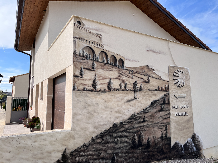 조금 더 걷다보니 무루사발(Muruzábal) 이라는 마을이 나옵니다. 마을 안의 건물 벽에 그림이 그려져 있습니다. 순례길을 걷다보면 이런 대형 벽화를 많이 보게 되는데, 순례길을 걷는 소소한 재미와 즐거움 중의 하나인 것 같습니다.