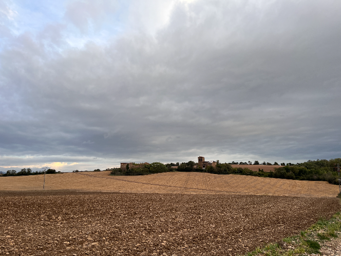 팜플로나 시내를 빠져나와 본격적인 순례길로 들어섭니다. 떠오르는 해를 등지고 걸어가며, 어제 팜플로나에서 '미카엘라'양이 준 초코빵을 베어물고 입 안 가득히 퍼지는 스페인 초코릿의 맛을 음미합니다. 10월 중순이라 그런지 추수를 끝낸 것으로 보이는 드넓은 논밭이 눈앞에 펼쳐집니다.