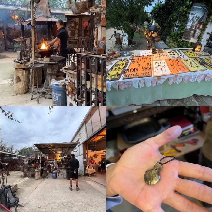 에스떼야를 벗어나자마자 곧 그 다음 마을인 아예기(Ayegui) 마을이 나타납니다. 아침을 든든히 먹고 출발한 저희는 마을을 지나치고 지나갑니다. 아예기 마을을 벗어나 흙길로 접어들자 저만치 앞에 사람들이 많이 모여있는 것이 보입니다. 가까이 가보니 그곳은 '아예기 대장간(Forjas Ayegui)'이었습니다. 한쪽에서는 아들로 보이는 한 청년이 열심히 쇠를 달구고 대장장이질을 하고 있고, 다른 한쪽에서는 아버지로 보이는 분은 이 대장간에서 직접 만든 수공예품을 판매하고 있습니다. 저희도 기념으로 순례자의 상징인 가리비 모양의 목걸이를 하나 장만합니다.