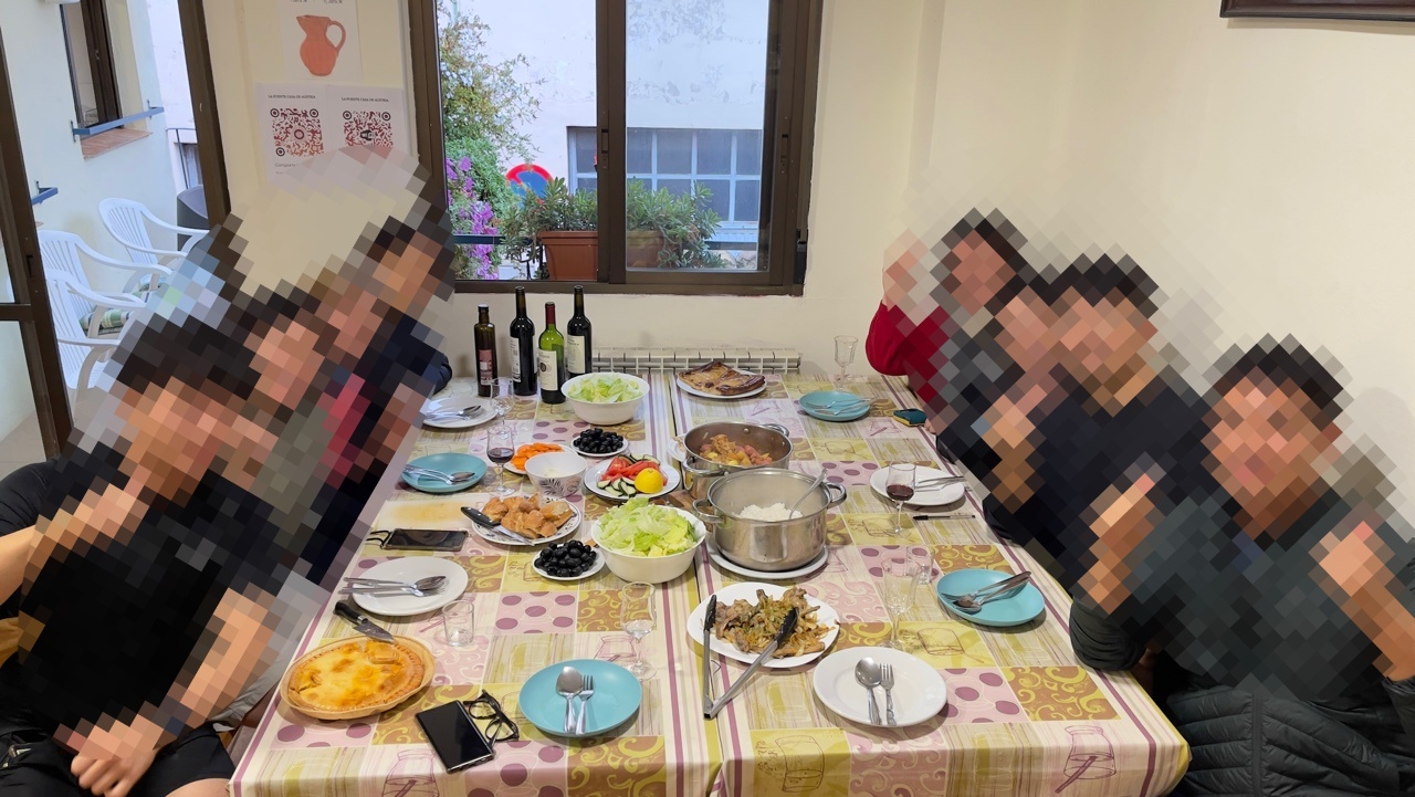 *Albergue La fuente Casa Austria 사립 알베르게: 오늘 묵은 숙소는 우리 패밀리의 골드 막내 '미카엘라'양이 예약을 도와준 사립 알베르게였습니다. 알록달록 아기자기한 인테리어의 숙소였고, 남녀가 구분된 공용 화장실과 욕실이 있었습니다. 주방은 조리가 가능했고, 나름대로 식기가 잘 갖추어져 있었습니다. 다만, 철제로 된 이층침대가 조금 삐그덕 거렸습니다. 그리고 방에 충전할 수 있는 콘센트가 별로 없어서 아쉬웠습니다. 개인적으로 저와 아내는 창문 바로 앞에 있는 베드를 배정받았는데, 창문 바로 밖에 있던 마을 길가의 가로등 불빛이 그대로 비치어 들어와 눈이 부셔서 밤에 잠을 들기가 어려워서 고생했던 알베르게 였습니다. 내부 사진은 남기지 못하고 알베르게 입구 사진만 있네요ㅠㅠ.
