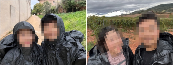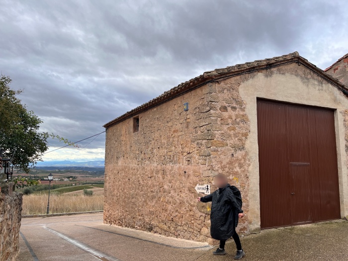 저희도 물병 하나를 꺼내 물을 비우고 포도주로 채워서 갔습니다. 이 포도주는 로스 아르코스까지 가는 길의 든든한 에너지원이 되어주었습니다. 이 날따라 기온이 뚝 떨어지고 비가 왔었거든요. 위치는 이라체 수도원(Monasterio de Santa Maria de Irache) 맞은편에 있었습니다. (위치정보: https://maps.app.goo.gl/ji4wqMzD9j2xBAUt8)