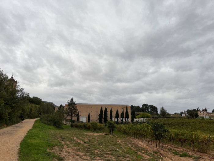 하늘이 심상치 않습니다. 아무래도 곧 비가 올 것 같은 느낌입니다. 발걸음을 재촉하고 걸어갑니다. 에스떼야를 지나 로스 아르코스로 가는 길에는 순례길에서 너무나 잘 알려진 그 유명한 일명 '포도주 수도꼭지'가 나오는 구간이라고 들었던 기억이 있어서 예의주시하며 걸어가는데 조금 전의 그 대장간을 지나자마자 바로 그 곳 수도꼭지가 있는 보데가스 이라체(Bodegas Irache, 이라체 와이너리)의 모습이 보입니다. 이렇게 가까운 곳에 있는 줄 몰랐네요. 아예기를 지나 그 다음 마을인 이라체(Irache) 마을로 가는 길의 중간에 있을 줄 알았는데 이라체보다는 오히려 아예기 마을에 가까운 위치에 있었습니다.